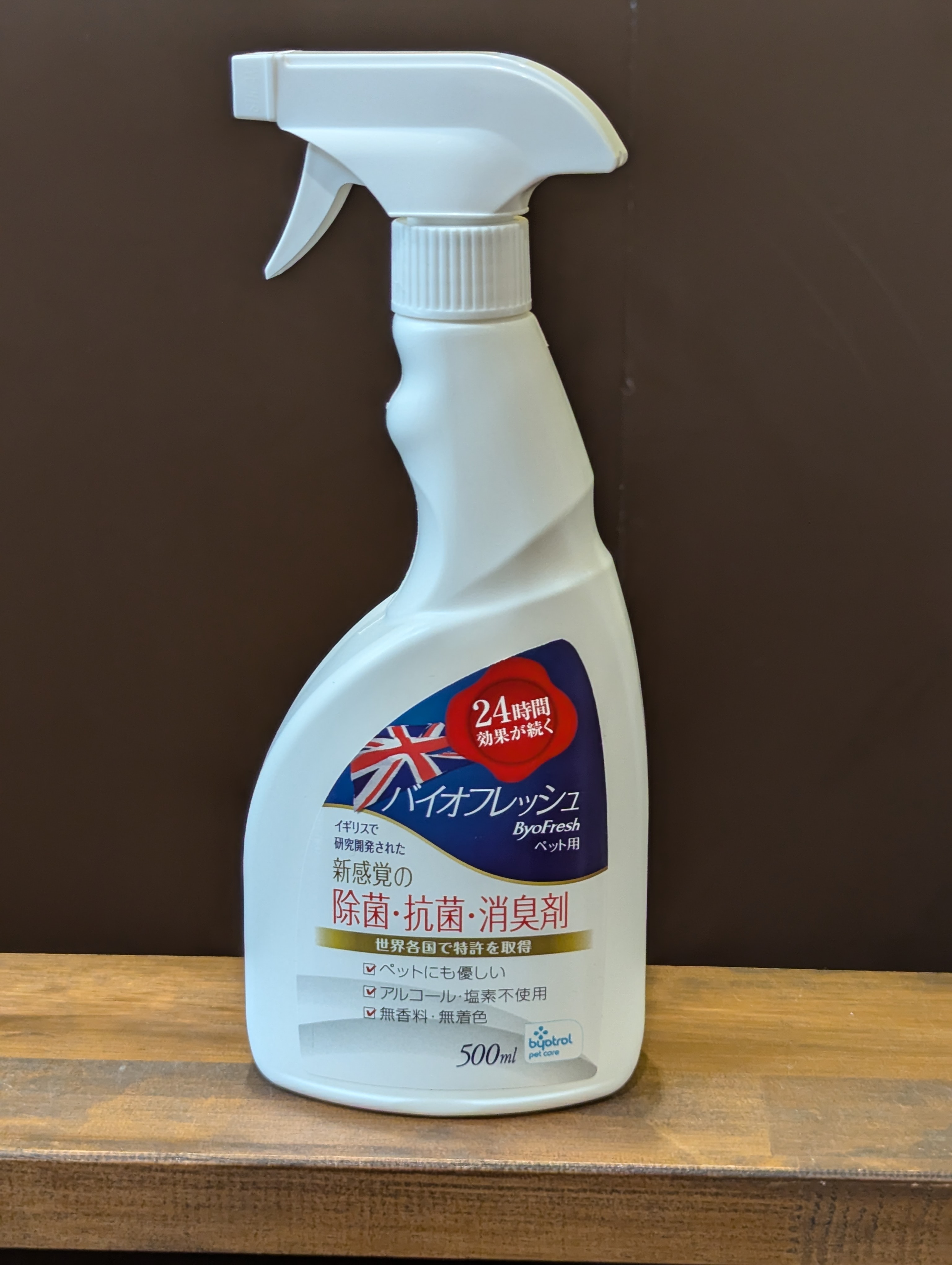 当店ではもちろん、動物病院でも除菌、消臭などに使われています。